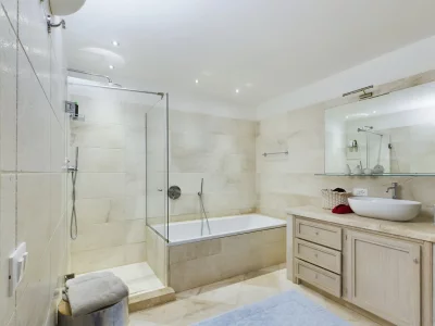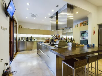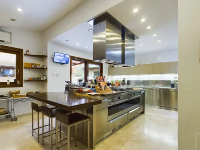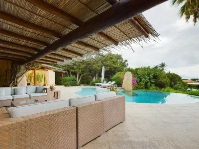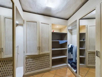 Diese prächtige VILLA in Piccolo Romazzino, Porto Cervo, geplant von Luigi Vietti, liegt in einer der exklusivsten Gegenden der Costa Smeralda und bietet ein unvergleichliches Luxuserlebnis. Die Immobilie befindet sich direkt am Meer und ermöglicht somit unmittelbaren Zugang zu den kristallklaren Gewässern und den wunderschönen Stränden der Umgebung. Die VILLA zeichnet sich durch ein elegantes und raffiniertes Design aus, erstreckt sich über eine großzügige Fläche und verfügt über 7 geräumige Schlafzimmer, jedes mit eigenem Bad, was maximalen Komfort und Privatsphäre für alle Gäste gewährleistet. Die Innenräume, mit größter Sorgfalt gestaltet, kombinieren hochwertige Materialien und maßgeschneiderte Möbel und spiegeln den typischen mediterranen Stil mit einem modernen Touch wider. Das Herzstück der Immobilie ist zweifellos der spektakuläre Außenbereich, der eine wunderschöne Panorama-Poollandschaft mit Blick aufs Meer bietet. Der Pool ist von großzügigen Sonnenterrassen umgeben, die ideal sind, um sich zu entspannen und das milde Klima Sardiniens zu genießen. Ein üppiger mediterraner Garten mit einheimischen Pflanzen rundet diese Oase der Ruhe ab und schafft eine Atmosphäre des Friedens und der Gelassenheit. Die Wohnbereiche der VILLA öffnen sich zu großen Veranden und überdachten Terrassen, die perfekt für Mahlzeiten im Freien und gesellige Momente sind, mit dem atemberaubenden Meer als Hintergrund. Eine moderne, voll ausgestattete Küche, ein elegantes Wohnzimmer und ein Esszimmer vervollständigen die Innenräume, die alle darauf ausgelegt sind, maximalen Komfort und Eleganz zu bieten. Diese VILLA verkörpert die Essenz von Luxus und Raffinesse und ist ideal für diejenigen, die eine exklusive Residenz in einer der renommiertesten Destinationen des Mittelmeers suchen. Die Nähe zum Zentrum von Porto Cervo, mit seinen Gourmet-Restaurants, hochmodischen Boutiquen und der Weltklasse-Marina, macht diese Immobilie noch begehrenswerter. Ein perfektes Zuhause, um unvergessliche Momente in einer Umgebung von absoluter Schönheit zu erleben.