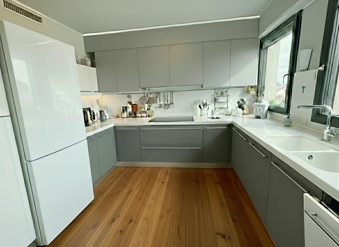 Die Immobilie erstreckt sich über ca. 400 m² Wohnfläche und wird durch etwa 70 m² großzügige Terrassen ergänzt, von denen sich ein eindrucksvoller Blick über die Skyline von Mailand eröffnet.