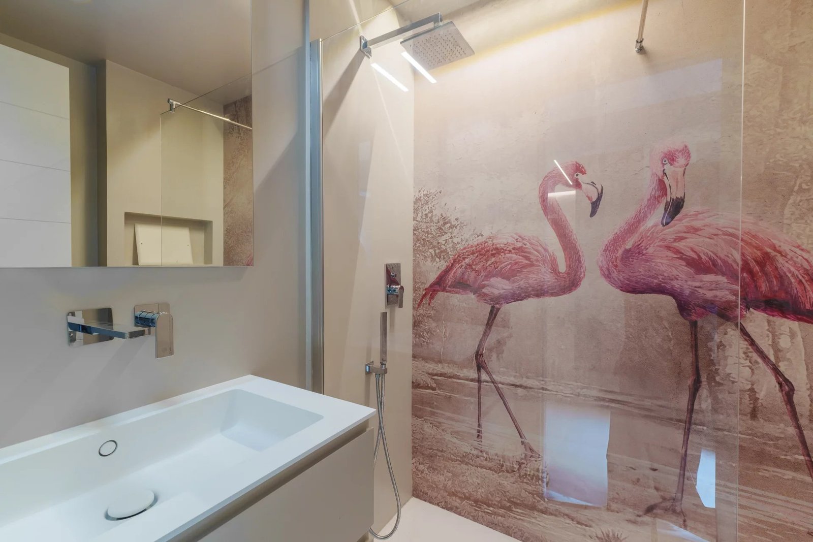 Con una superficie lorda di circa 200 m², l’abitazione si sviluppa su due piani e comprende una luminosa zona giorno con cucina a vista, diverse camere da letto e bagni eleganti. Le dotazioni includono riscaldamento a pavimento, aria condizionata e una cucina attrezzata con stoviglie, bicchieri e posate, pronta all’uso.