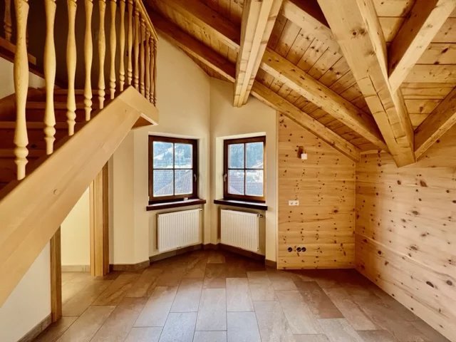 Nel cuore delle Alpi, a San Candido, questo appartamento incarna l'eleganza semplice di una dimora che sa coniugare calore e raffinatezza. Un rifugio tranquillo e moderno, dove le finiture in legno di cirmolo donano un'atmosfera calda e accogliente, mentre la mansarda con travi a vista aggiunge carattere e originalità.