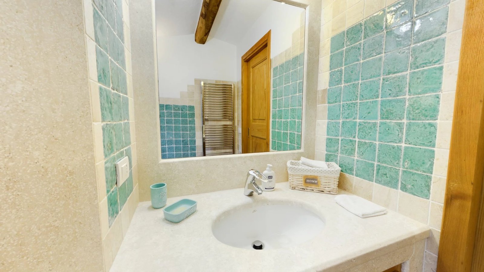 -Architettura: Design sardo autentico con facciate in pietra naturale, travi in legno e dettagli in terracotta, perfettamente integrato nel paesaggio circostante.