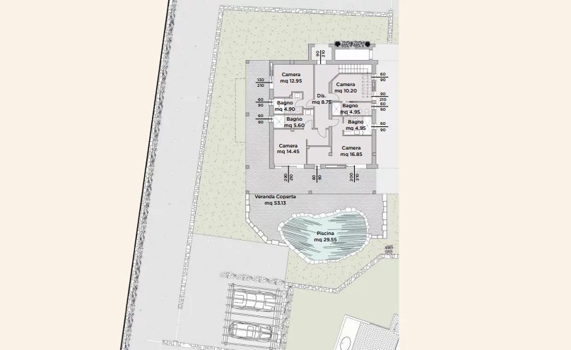 La VILLA si sviluppa su due livelli e comprende **cinque camere da letto spaziose**, ciascuna dotata di un design moderno e di grandi finestre che inondano gli ambienti di luce naturale. Ogni camera è un’oasi di tranquillità, ideale per rilassarsi e ricaricarsi, offrendo arredi di alta qualità e una perfetta fusione di stile e funzionalità. A disposizione dei residenti ci sono **cinque bagni moderni**, caratterizzati da linee pulite, materiali di pregio e dotati delle più recenti tecnologie, che aggiungono un ulteriore tocco di lusso.