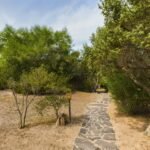 The dependence, also designed in Sardinian tradition, blends discreetly into the expansive garden landscape and is set slightly apart to ensure privacy. Between the two buildings, the large garden unfolds, planted with typical Mediterranean flora like olive trees, lavender, and fragrant herbs. Stone terraces and winding paths connect the buildings, while gently sloping lawns offer unobstructed views of the sea.